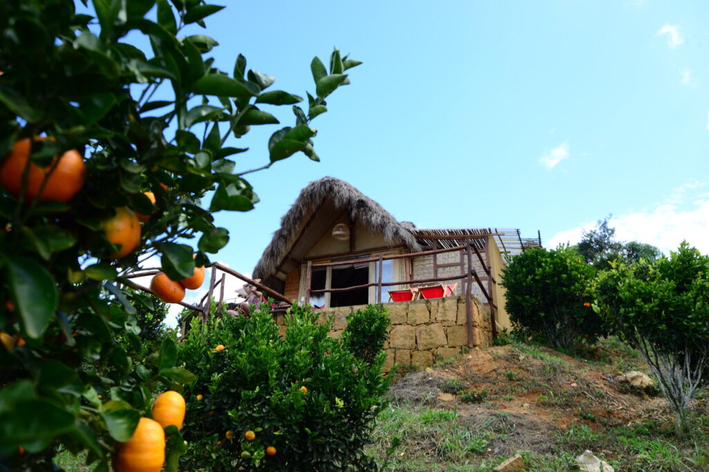 Habitación construida con materiales ecológicos de la región, terraza privada y baño privado.